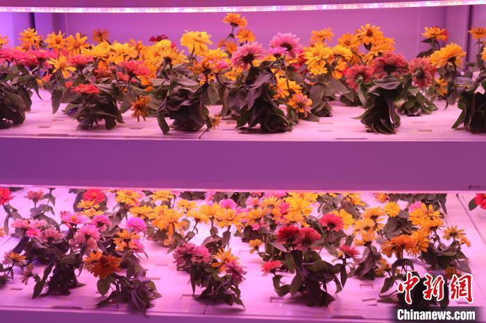 图为杨凌智慧农业示范园植物工厂内的培育花卉。中新社记者 李一璠 摄