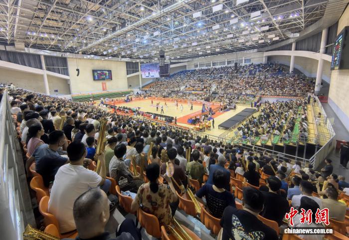 图为湘钢集团队球员投篮。 周阳 摄 图为观众在现场加油观赛。 周阳 摄 图为冠军争夺战现场。 周阳 摄