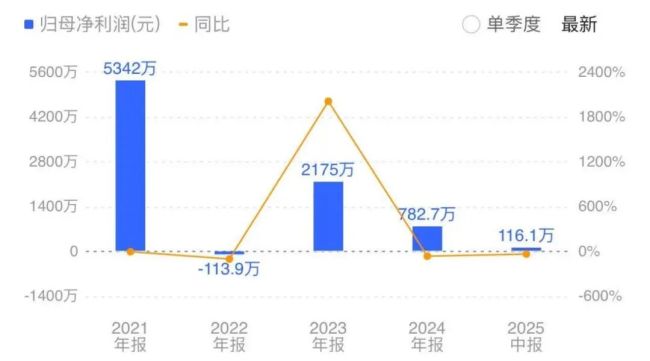 2020年至2025年上半年,向日葵的营收分别为2.87亿元、2.97亿元、3.36亿元、3.38亿元、3.30亿元、1.44亿元;净利润分别为5587万元、5342万元、-113.9万元、2175万元、782.7万元、116.1万元。可以看出,近年来向日葵整体业绩波动幅度较大,个别年头的盈利也只有百万元之数。