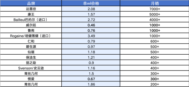 米诺地尔搽剂市场就是一个缩影。阿里平台数据显示,除了头部品牌达霏欣,1.57元/ml的康王品牌月销量最高,0.67元/ml的惯爱品牌反而月销量垫底。这说明市场进入“筛选期”而非“增长期”。用户不再轻信噱头、不再被低价打动,开始选择“能陪着自己治下去的好品牌”。