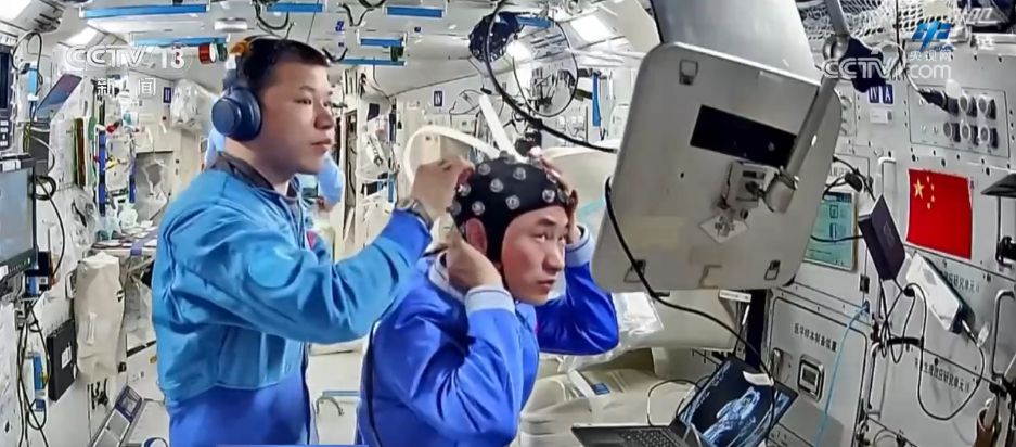 在航天医学实验领域,三名航天员使用笔记本电脑等设备及相关软件完成了精细动作控制、元认知监控研究等多项实验测试工作。此外,利用脑电设备获取了视觉运动加工、微重力关系认知等实验项目所需数据,助力地面科研人员持续开展研究。