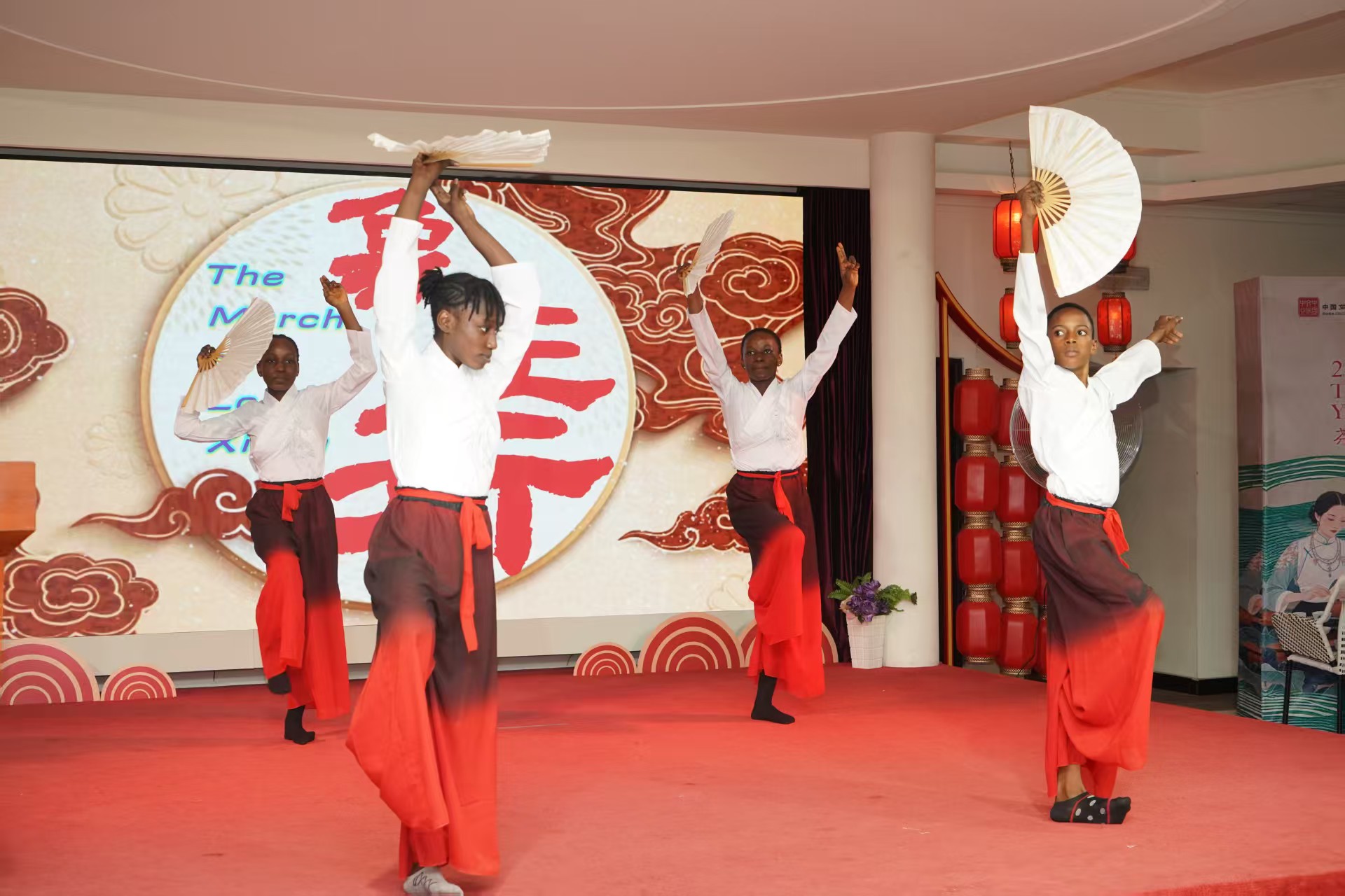“中国之角”学生表演舞蹈《采茶姑娘》。尼日利亚中国文化中心供图
