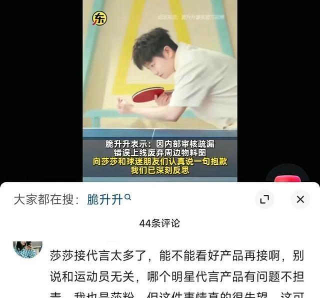 网上有留言表达了对孙颖莎接太多代言的不满:“莎莎接代言太多了,能不能看好产品再接啊,这可是吃的东西啊,不能这么坑粉丝吧。”这种失望不仅针对产品,更是对偶像信任的动摇。
