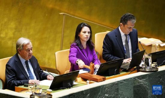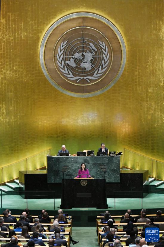9月23日,在位于纽约的联合国总部,第80届联大主席贝尔伯克(中)主持第80届联合国大会一般性辩论开幕式。新华社记者吴晓凌摄