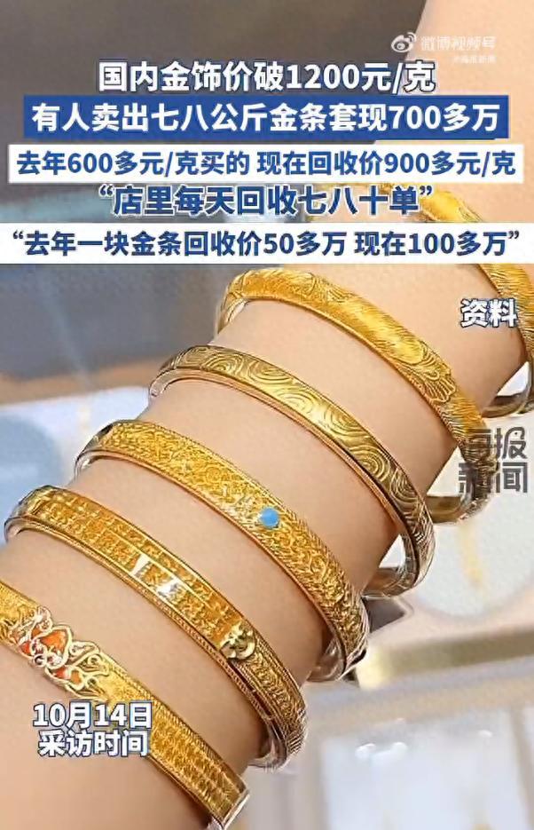 同一天,厦门一位黄金回收商表示,近期每天能成交几十单,有人甚至将去年购买的金条卖出,套现超过700万元。许多人选择在这个时候将手中的金条变现。