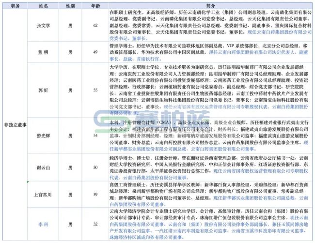 与第十届董事会成员相比,非独立董事中,具有经济学背景、47岁的李泓燊离任,取而代之的是一位“90后”——1993年出生的会计师、高级审计师李科。