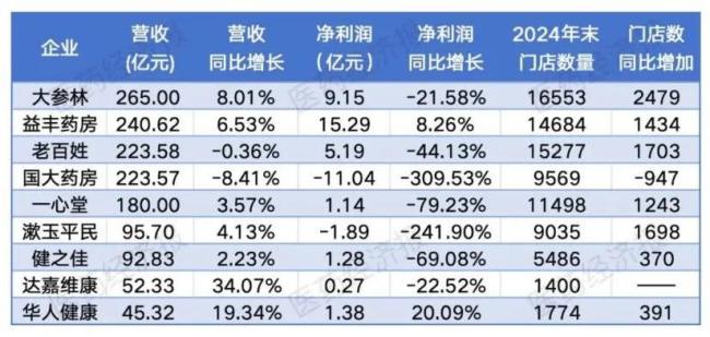 截图来源:各大上市零售连锁药店2024年财报