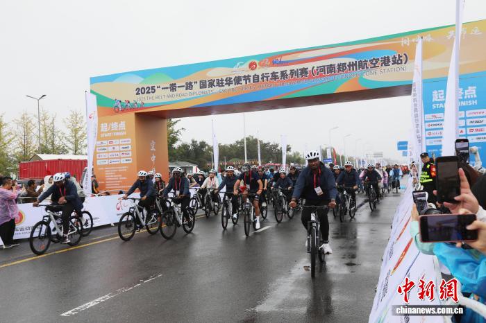 中新网郑州9月27日电 (陈贵洋)9月27日,2025“一带一路”共建国家驻华使节自行车系列赛在河南郑州航空港经济综合实验区(以下简称郑州航空港区)双鹤湖中央公园开赛,来自马来西亚、利比里亚、厄瓜多尔、西班牙等“一带一路”共建国家的近百名驻华使节、留学生代表,以及国内多个省区市的骑行爱好者齐聚郑州,以车会友,共倡绿色健康生活方式。