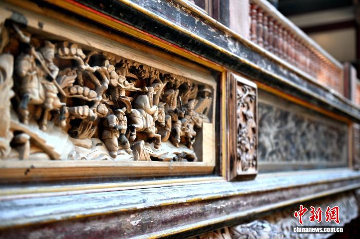 图为9月14日,临水宫祖庙建筑上的雕刻。中新社记者 吕明 摄